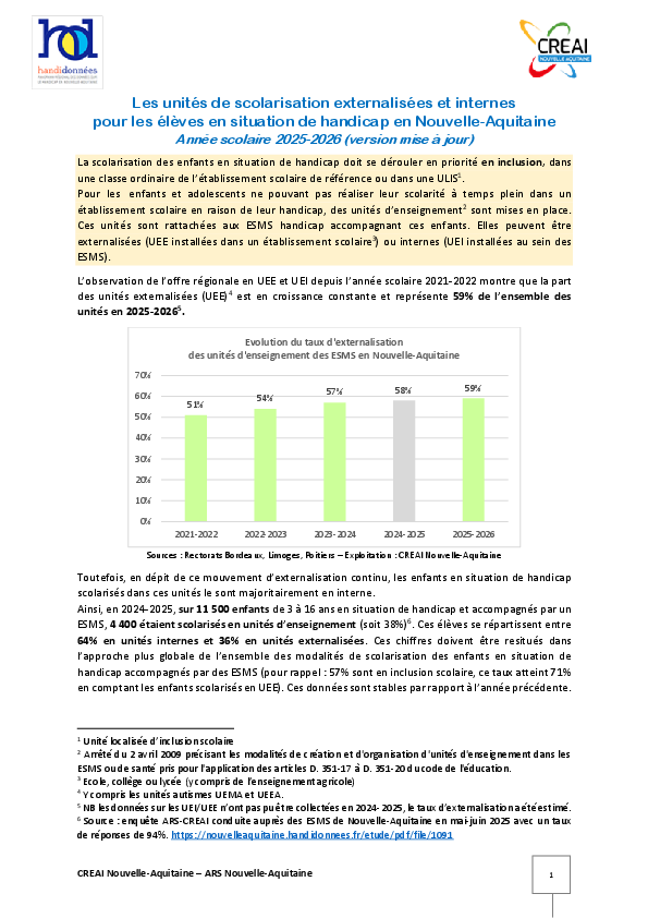 Les unités de scolarisation externalisées et internes pour les élèves en situation de handicap